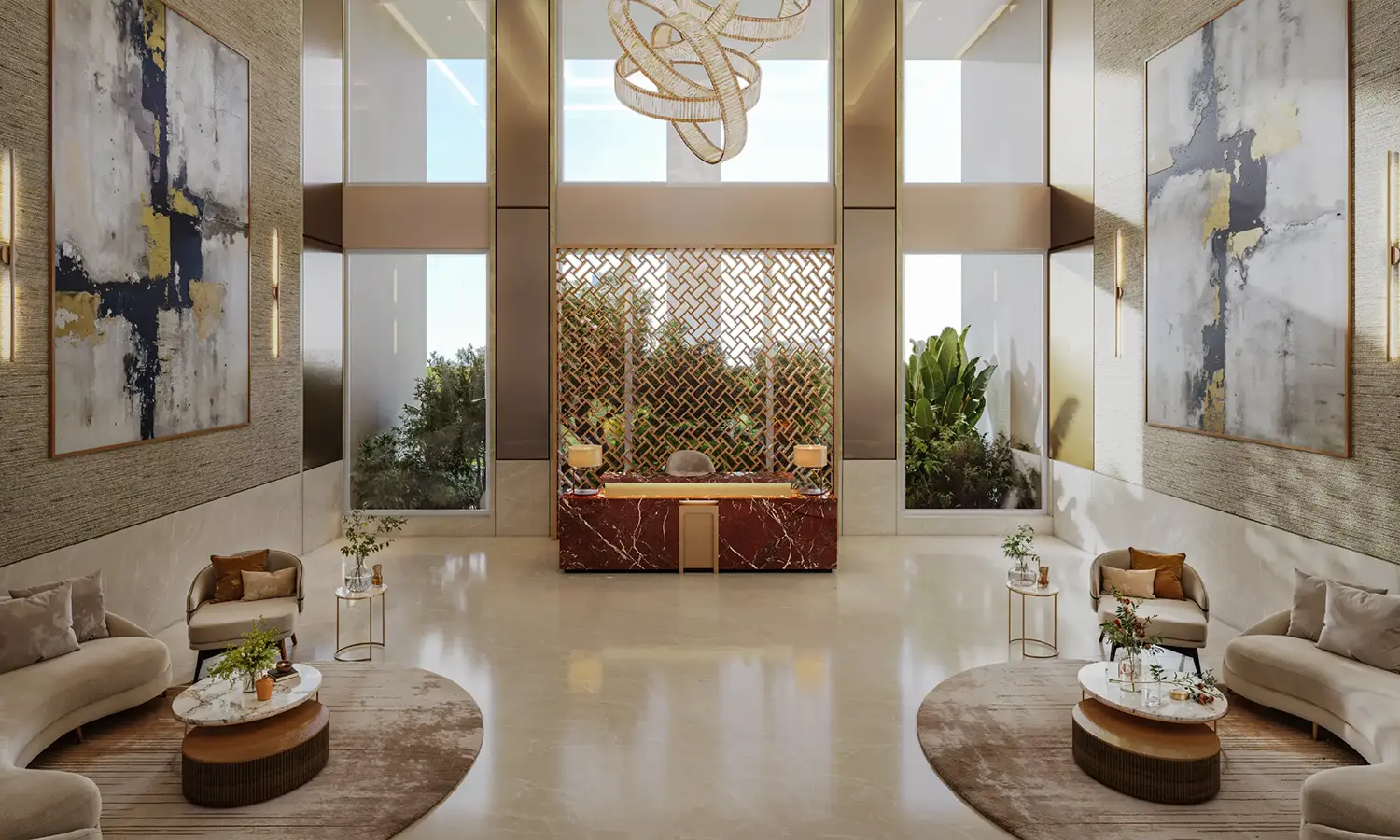 Panoramic city and garden views in serene exclusivity.
